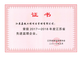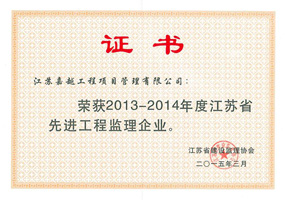 江蘇嘉越工程項目管理有限公司成立于1997年,擁有房屋建筑工程監理甲級資質,市政公用工程監理甲級資質。擁有GB/T19001-ISO9001質量管理體系認證證書。是江蘇省項目管理、全過程工程咨詢試點企業,是江蘇省“優秀監理企業”、“先進監理企業”。是江蘇建設招投標與監理協會常務理事單位,常州市建設監理協會會長單位。